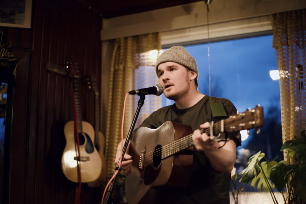 Recently settled in Lahti, Miika Leivo blends big-city folk and indie influences with the Finnish singer-songwriter tradition. In his atmospheric solo shows, vocals and guitar take center stage, bringing the lyrics even closer to the listener. The mood can be characteristically Finnish—melancholic, yet never overwhelming. His 2024 debut album as Nääj received a four-star review from Pekka Laine, and the songs have been heard on radio stations and playlists. Known for his intense live performances, Miika has opened for artists such as Samuli Putro and Edu Kettunen.