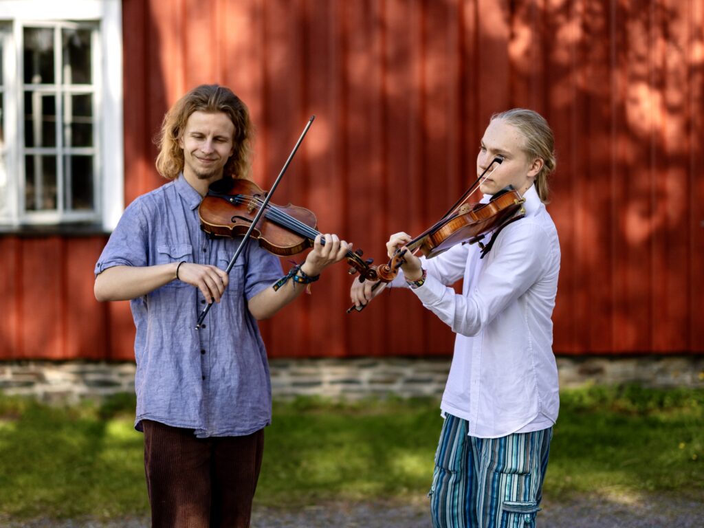Erkki Virkkala and Iikka Huntus are young Finnish fiddlers and violinists from Kaustinen who form a modern folk music duo. Their music is strongly rooted in the traditional pelimanni style of Kaustinen, which they combine with influences from jazz and classical music, creating their distinctive and energetic sound.
