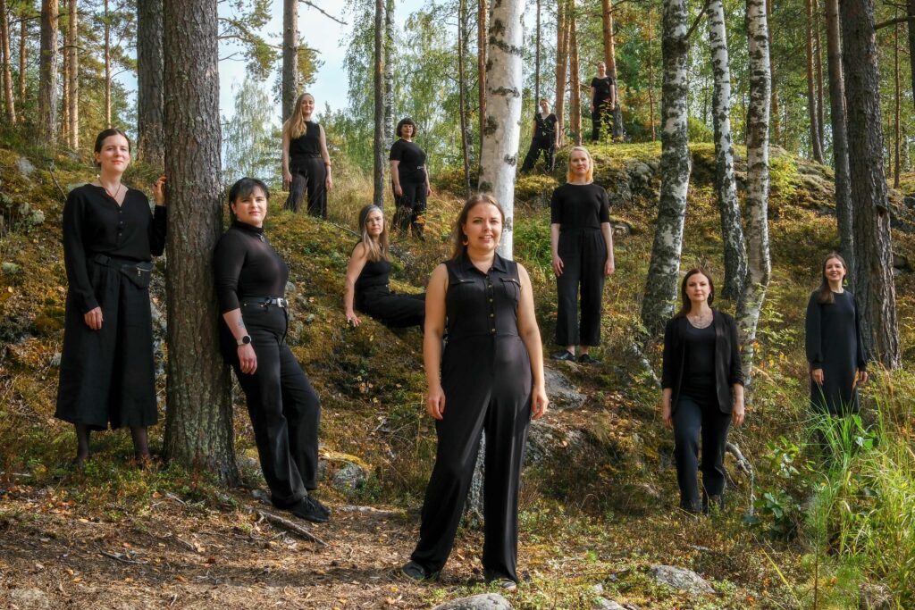 Celebrating its tenth anniversary in spring 2026, the vocal collective Sabrina ja Saarten tyttäret is a creative community that composes and performs new Finnish vocal music based on Kalevalaic poetry. The music is rooted in the compositions of the group’s founder and artistic director, Sabrina Ljungberg, as well as in collective composition processes led by her.